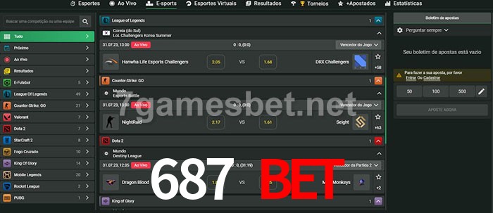 O 687 bet oferece uma grande seleção de opções de apostas em e-sports com probabilidades competitivas